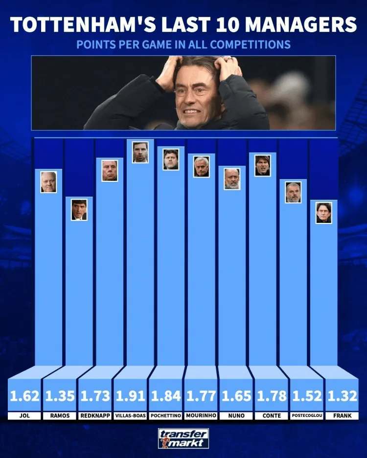 热刺主帅弗兰克再创尴尬纪录 白鹿巷也成教练黑洞?